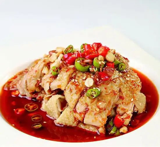 以麻辣味为主,选用鸡脯、鸡腿肉,入鲜汤煮熟,敲松肉质,撕成鸡丝,淋味汁。特色是麻辣咸鲜味美,鸡丝细嫩爽口。因在烹制过程中,要用小木棒敲打鸡肉,使其松软,故名“棒棒鸡”