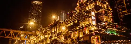 以最具巴渝传统建筑特色的吊脚楼为主体,依山就势,顶层可远观江景,夜景如梦如幻,值得一看,灯火通明,堪称山城一景。