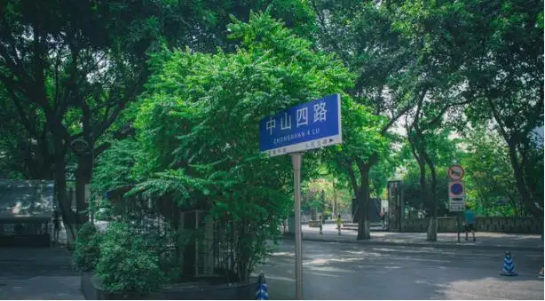 中山四路被誉为“重庆最美的街区”。全程800米,沿街散落着周公馆、戴公馆、桂园等。一路是古朴的建筑,路两旁是枝叶繁茂的黄葛树肆意生长,为路人贡献一片阴凉。
